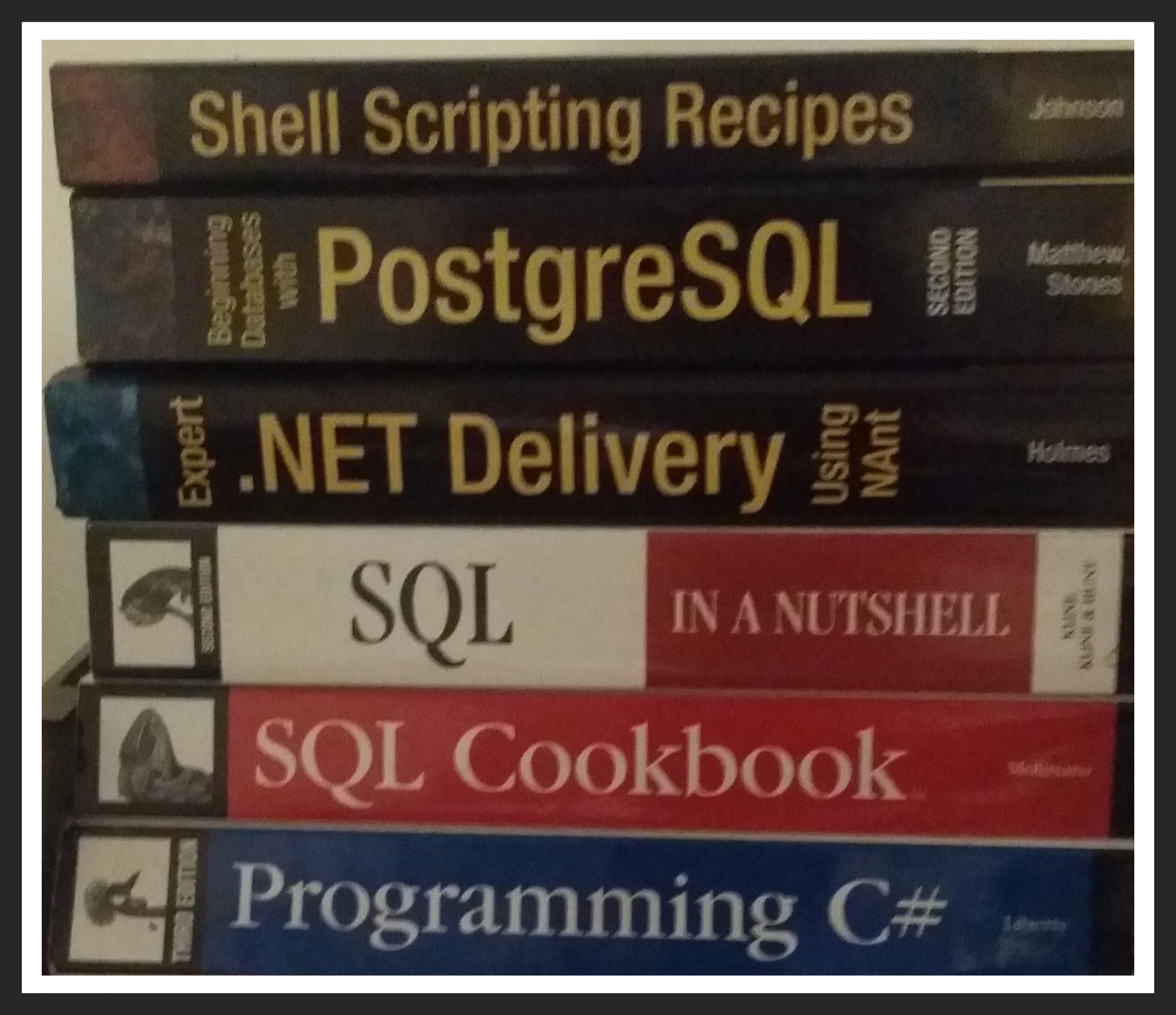 While cleaning my desk at work the other day I was surprised to see a stack of programming books. Usually they sit hidden behind one of my many monitors. It got me thinking about when the last time I had actually opened one of them. I can’t remember. I can remember reading a few of those books like novels, as I tried to learn the secretes they contain. Or reaching for them looking up some command I couldn’t remember. Now they just sit there, and Google provides the answers. It leaves me wondering what should I do with them? How useful is the information they contain?