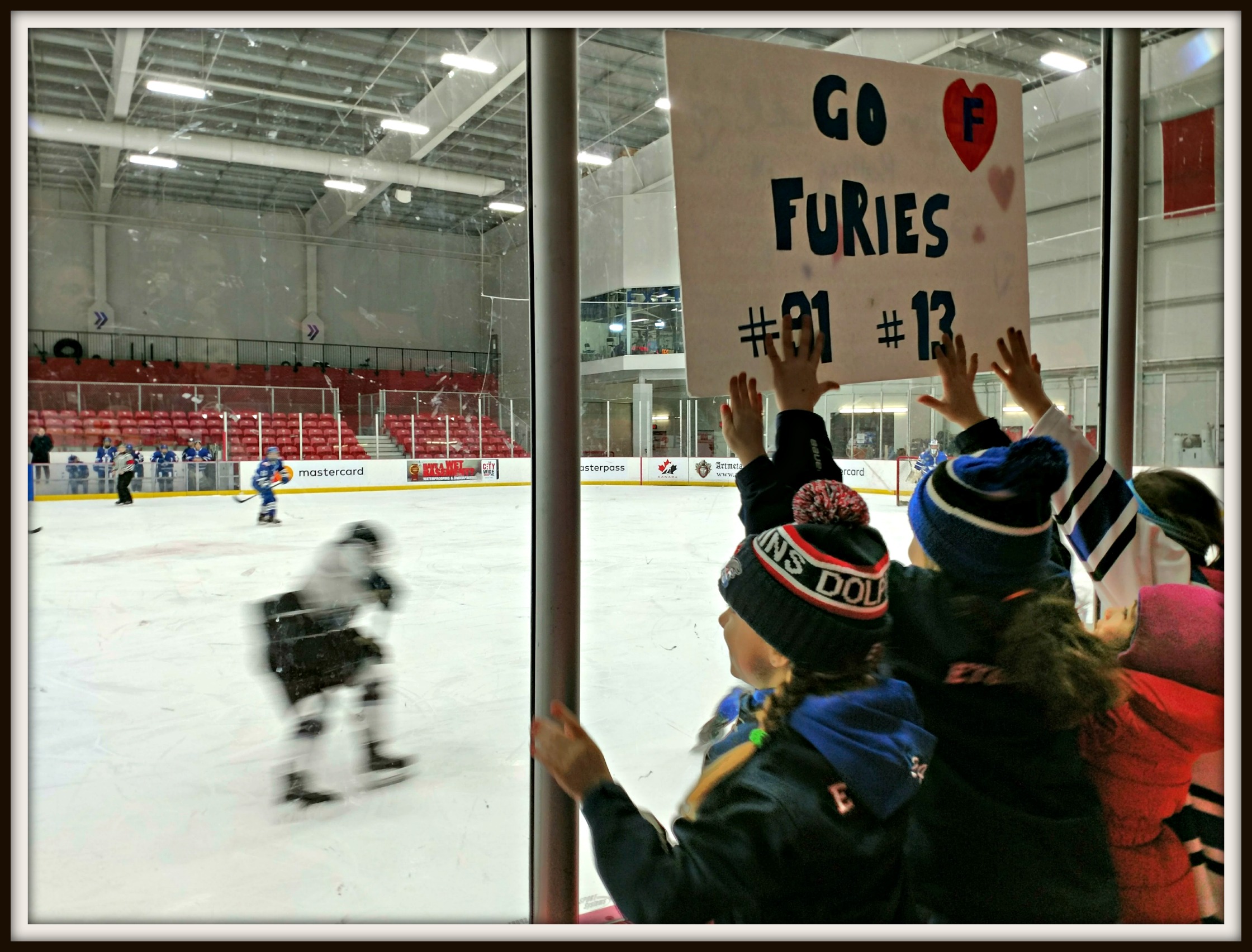 Today we headed to the CWHL Game to watch the Toronto Furies take on the Brampton Thunder. Violet’s favourite player, Natalie Spooner plays (Number 24) for the Furies and scored a hattrick. It wasn’t enough for the furries to defeat the Thunder, which was ok for Violet and her teammates because three of the Brampton players coach the girl’s hockey teams, and they came to play. It was a great game, ending 4-3 with Brampton scoring the winner in the final minute of the game.