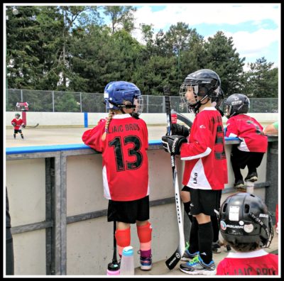 Today Violet played her last ball hockey game of the EMBHL season. Sure she might play on a team at provincials, but this is the end of the red team season. They had a chance of winning it all but came up just short. Losing 4-3. today’s picture of the day is Violet and Lucas discussing what play they were going to try their next shift. Between them, they scored all the Red team’s goals, Lucas with 2 and Violet with one. They came close to tying it up in the final minutes but just couldn’t do it. Still, it was a good season for Violet, who missed a few games with her broken arm.
