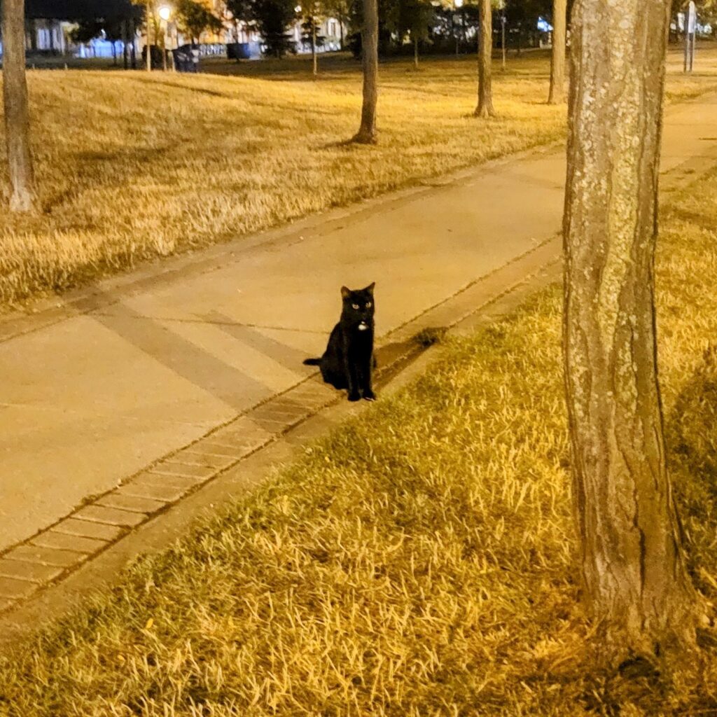 Tonight we have a picture of our cat that insists on following Ruby and me when we go for our walks. Tonight he joined us in the big park, where I captured tonight’s picture of the day.