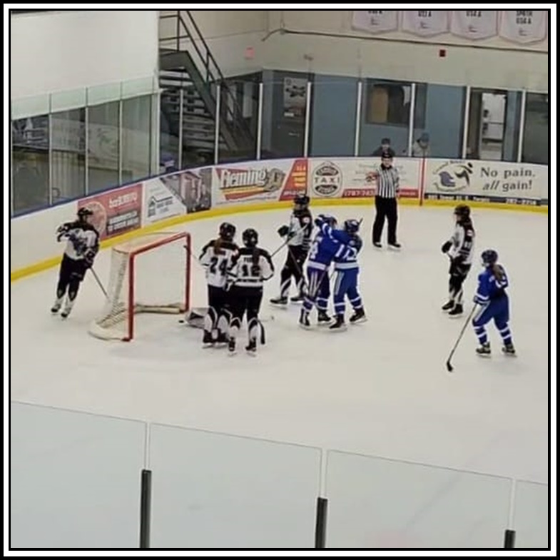 Today’s picture of the day is from Violet’s second hockey game of the weekend. It was a rematch of yesterday’s game, in which her team lost 2-0. Tonight, the score was 1-1. They had fallen behind 1-0 in the first period before tying it in the second on a beautiful goal by Violet.