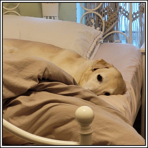 One fun thing about working from home is I can see what happens around the house when nobody is usually home. Today I found Ruby curled up in Violet’s bed. She looked so comfortable, she barely even noticed when I slipped in to get my picture.