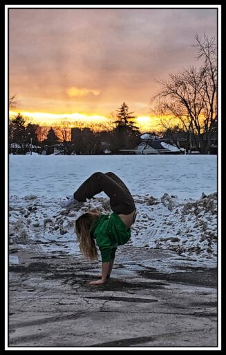 POD: Sunday Sunset Posted on January 21, 2024by mrjCategories:Family, Picture of the Day Today’s picture of the day was captured after Ball Hockey. She’s just so happy to back to her regular activities. She was inspired to do some gymnastics with the sun setting backdrop. Share this: Click to share on Facebook (Opens in new window) Facebook Click to share on X (Opens in new window) X Like this:Like Loading... Related mrj www.geekwithkids.com