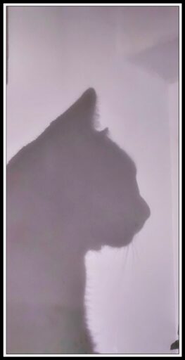 Tonight we have a picture of Banoonoo, well his shadow. I took this as we settled in for sleep, with Ruby curled at our feet, the cat came for his nightly snuggles. The shadow was an accident I was looking for something with my phones flash light and when I saw the shadow he was casting I knew I needed to capture it.