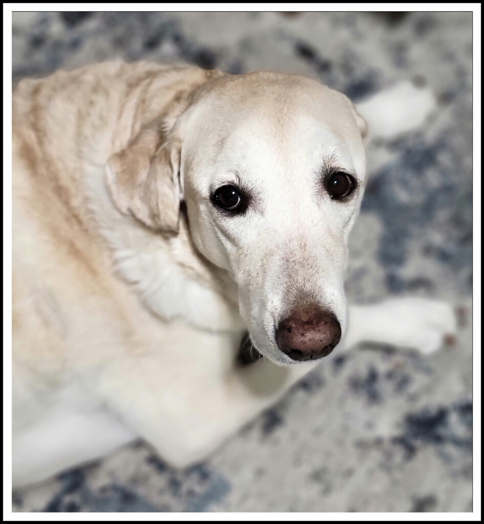 Today I have a picture of Ruby relaxing on our living room carpet, looking up at me hoping that it’s walk time.
